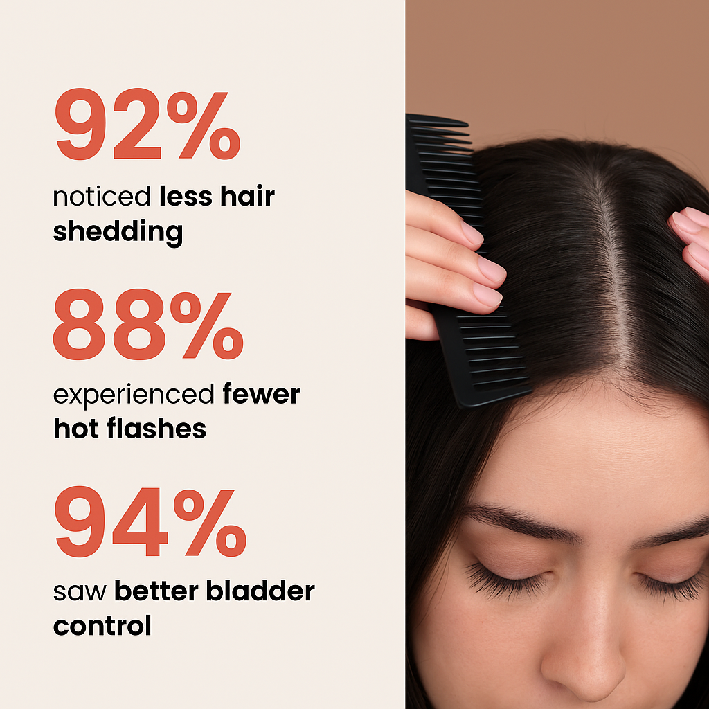 As estrogen drops during menopause, DHT rises — leading to hair thinning, shedding, and even bladder issues.